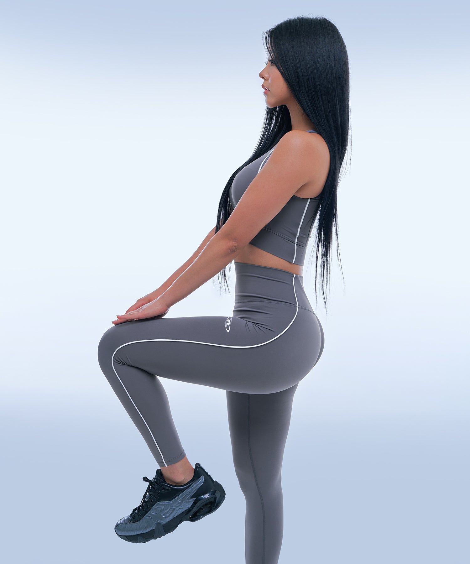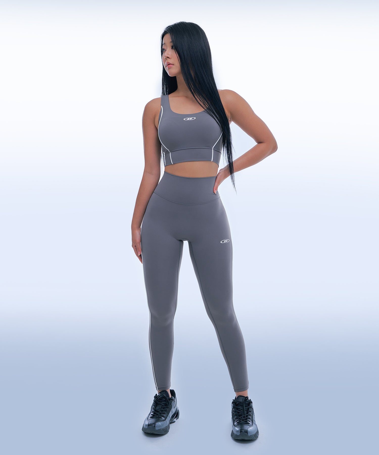 IN STOCK* SYMBOL B PIPING LONG LEGGINGS [CHARCOAL]
