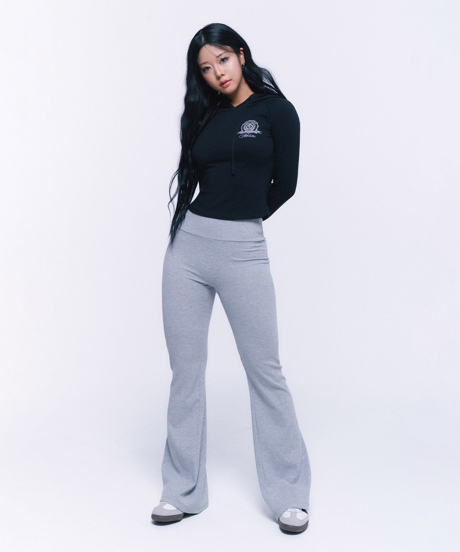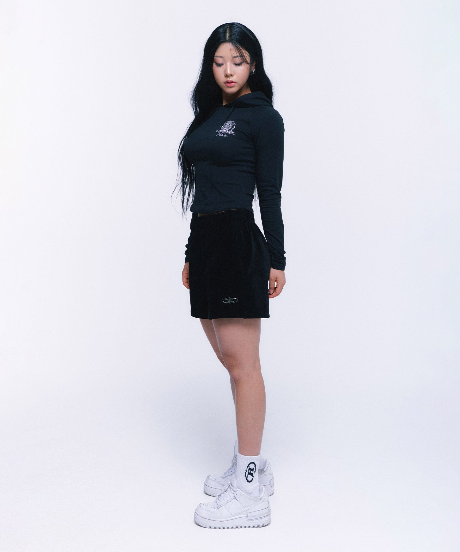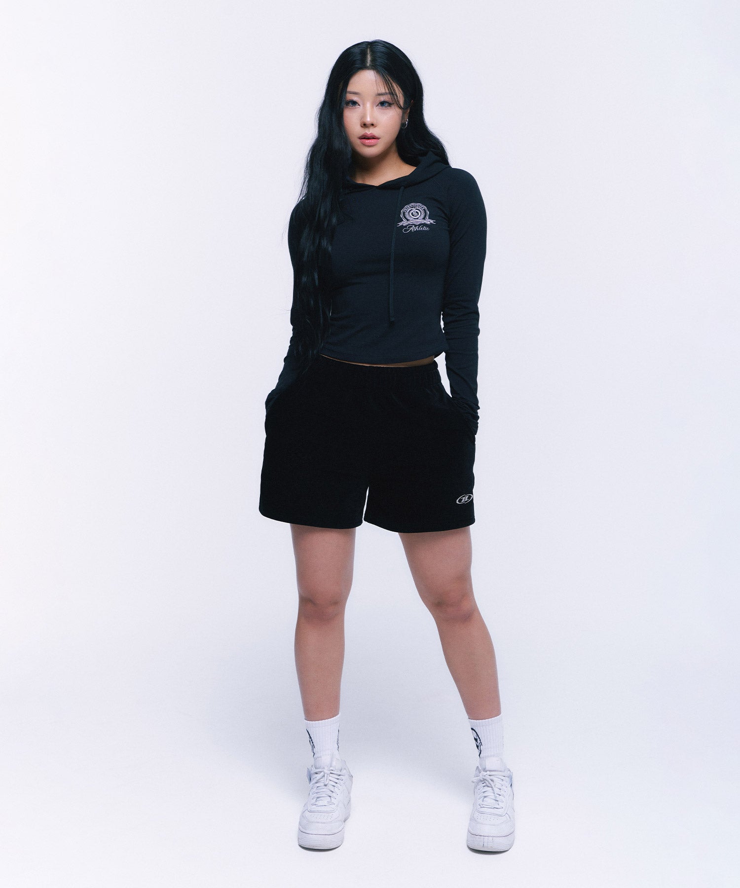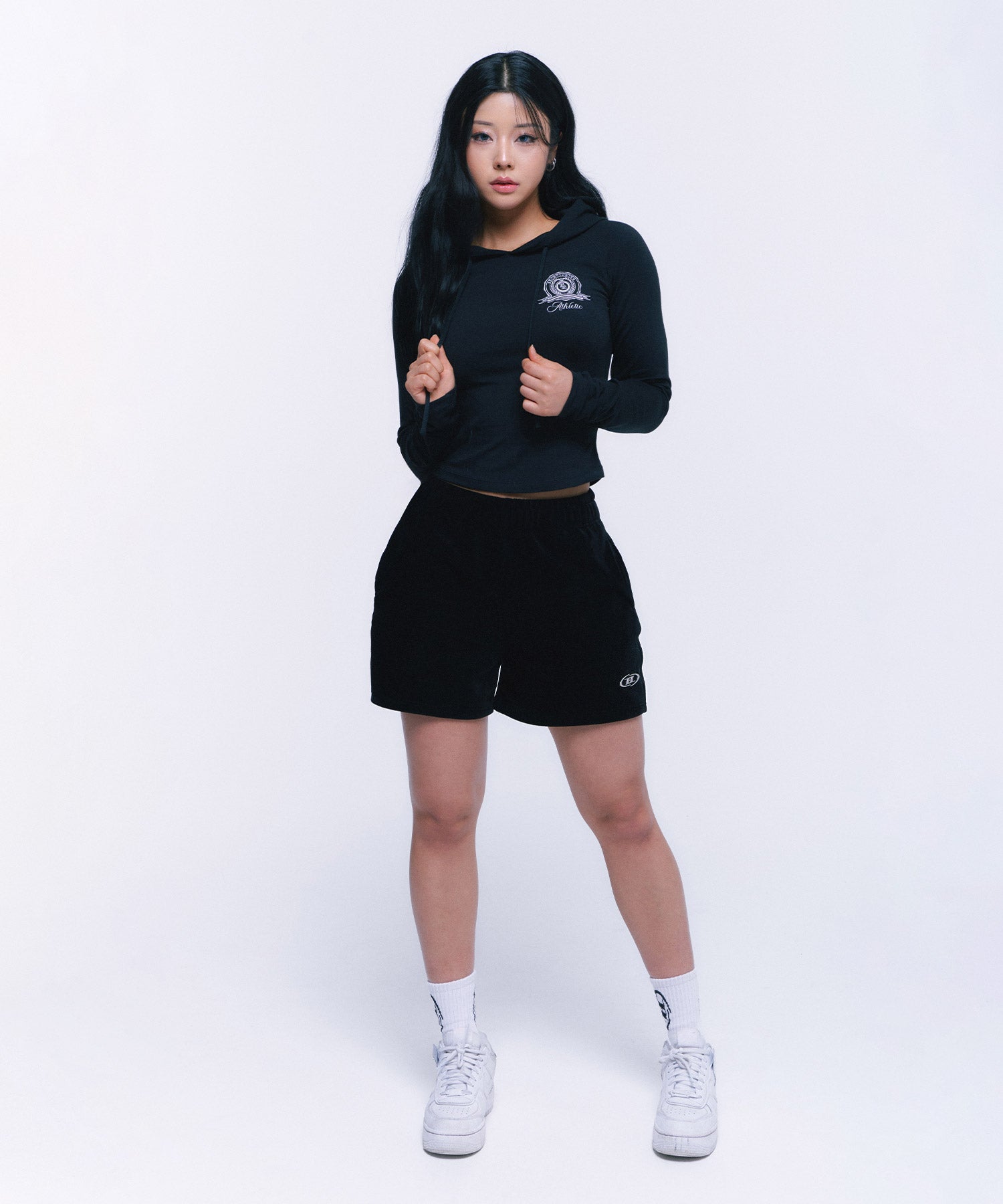 ATHLETIC EMBLEM SLIM HOODIE [BLACK]