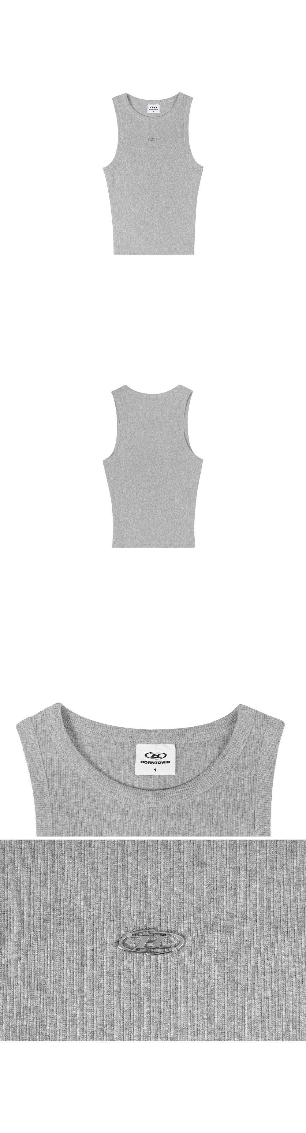 B PENDANT RIBBED SEMI CROP SLEEVELESS [MELANGE GREY]