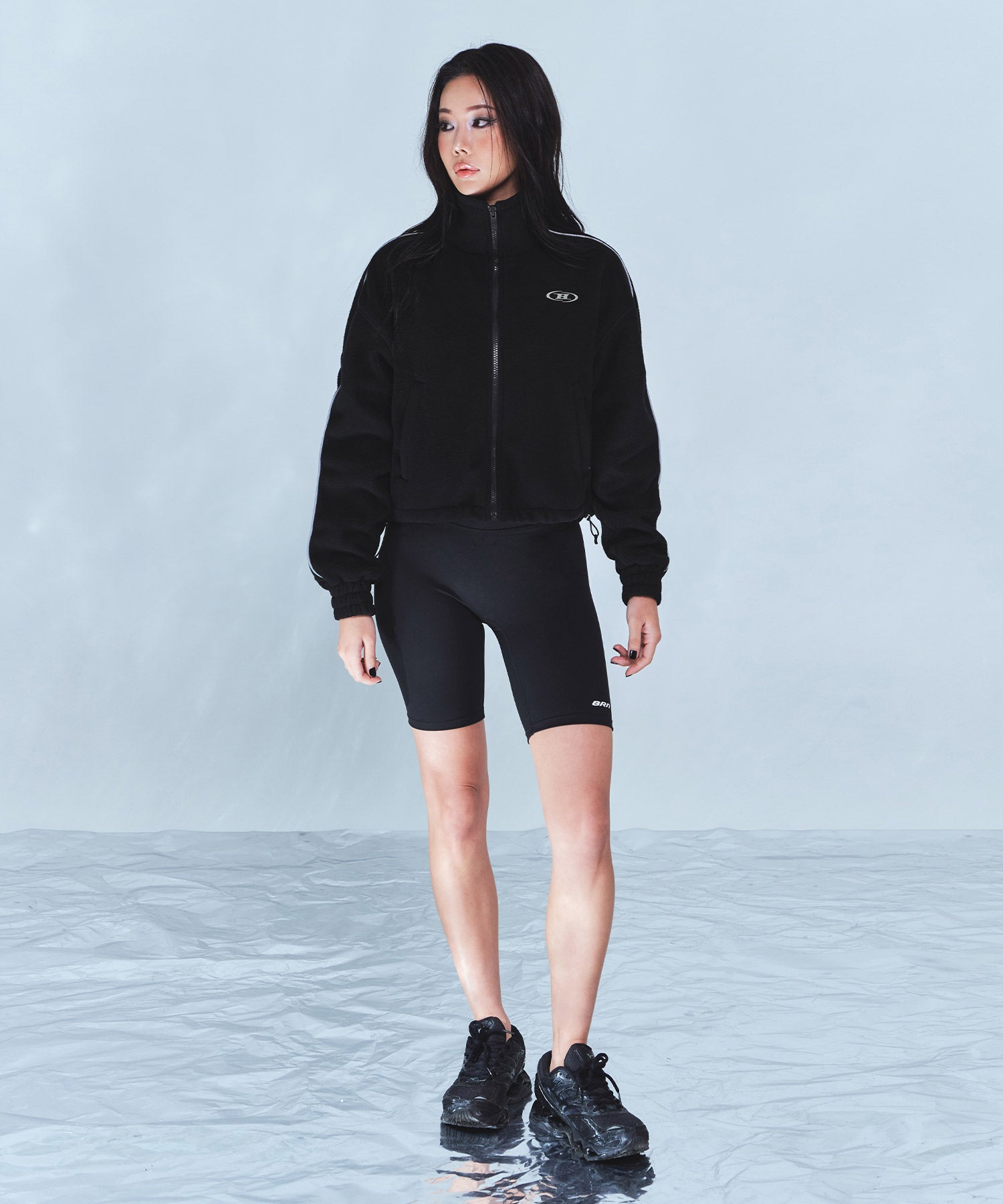 CHROME B FLEECE CROP JACKET [BLACK]