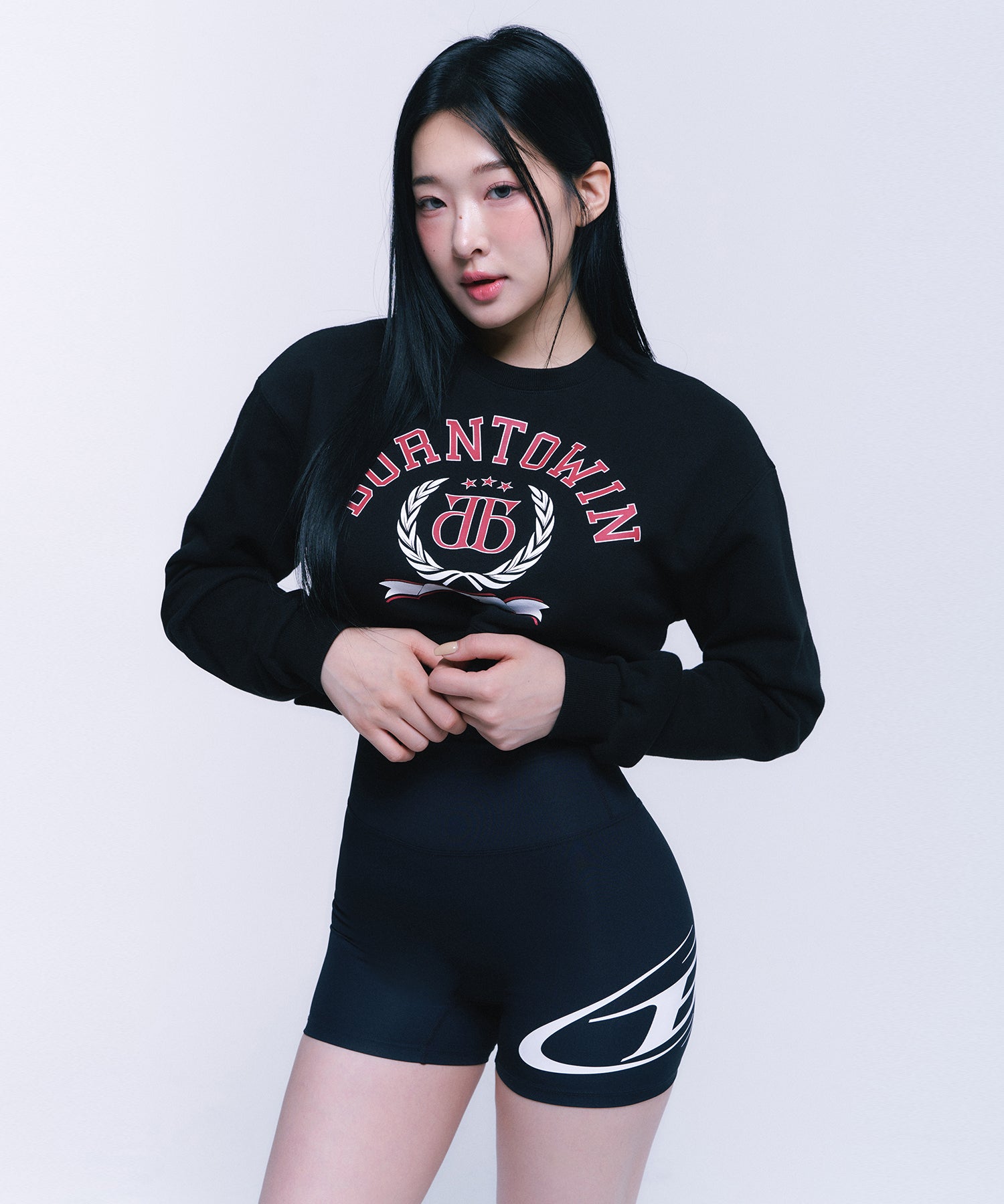 DOUBLE B EMBLEM CROP SWEATSHIRTS [BLACK]