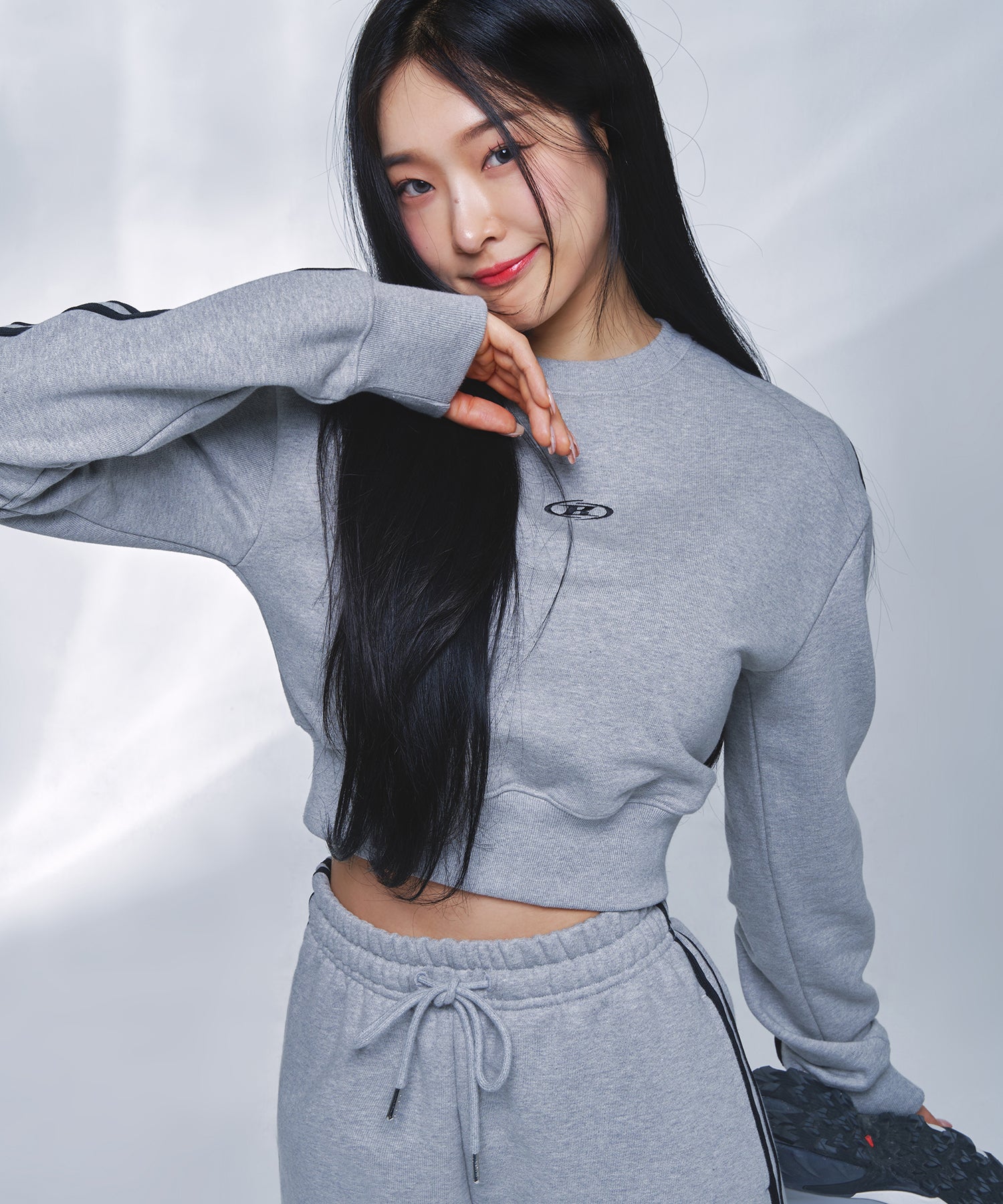 TRACK LINE B LOGO CROP SWEATSHIRTS [MELANGE GREY]