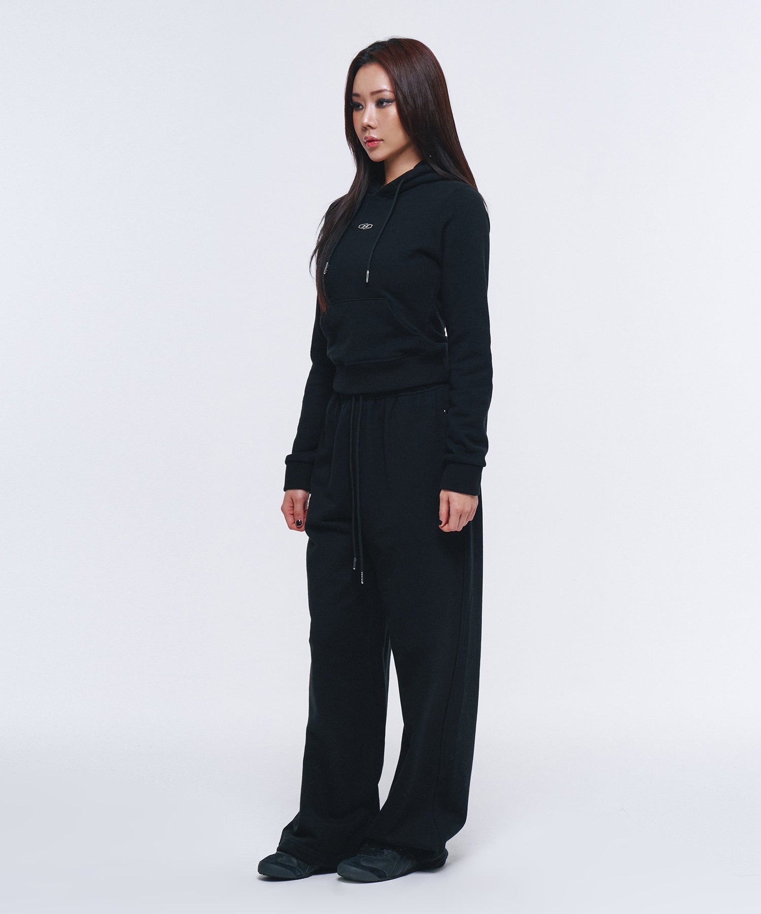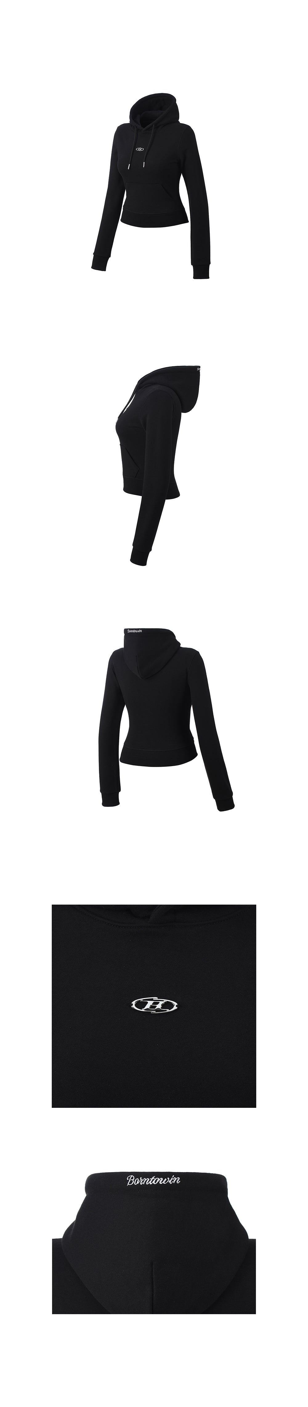 W B PENDANT COTTON CROP HOODIE [BLACK]