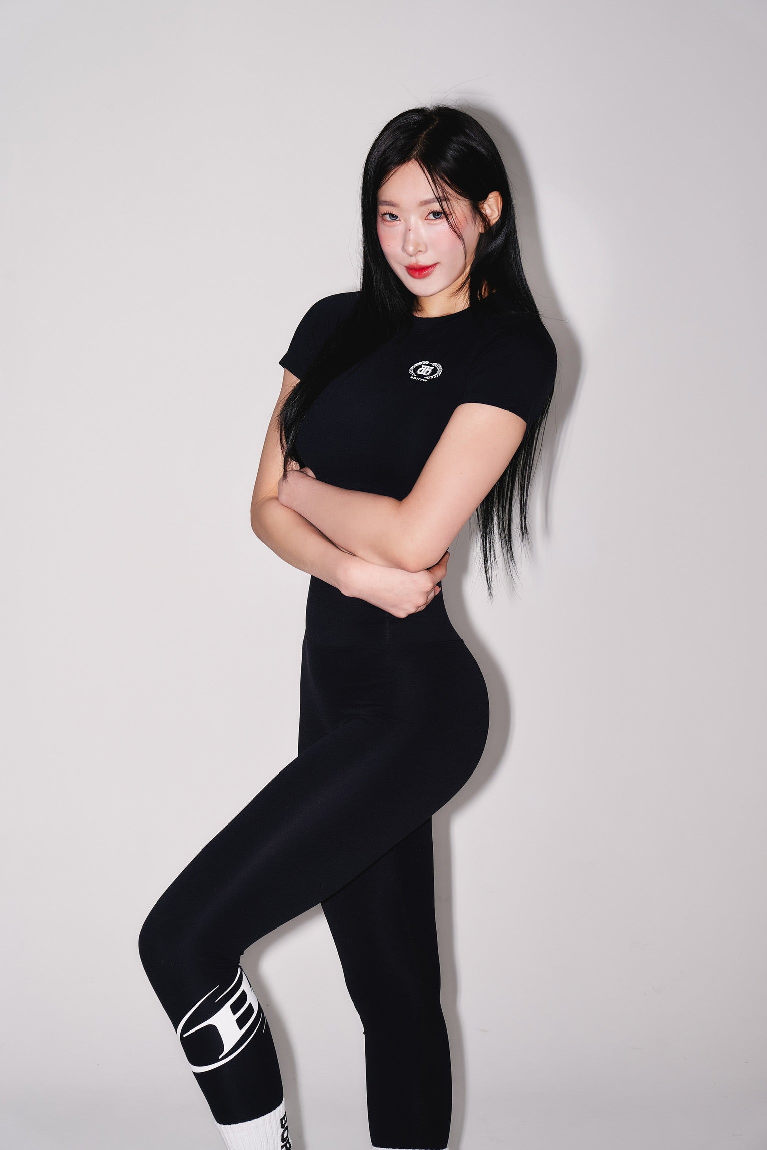 IN STOCK* W QUICK DRY EMBLEM SEMI CROP T-SHIRTS [BLACK]