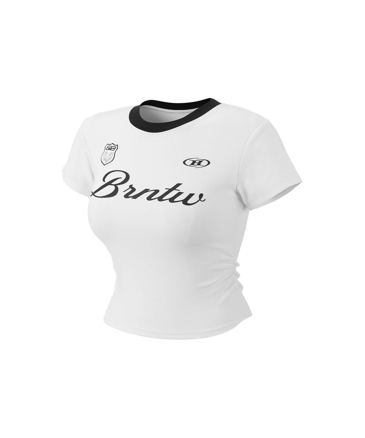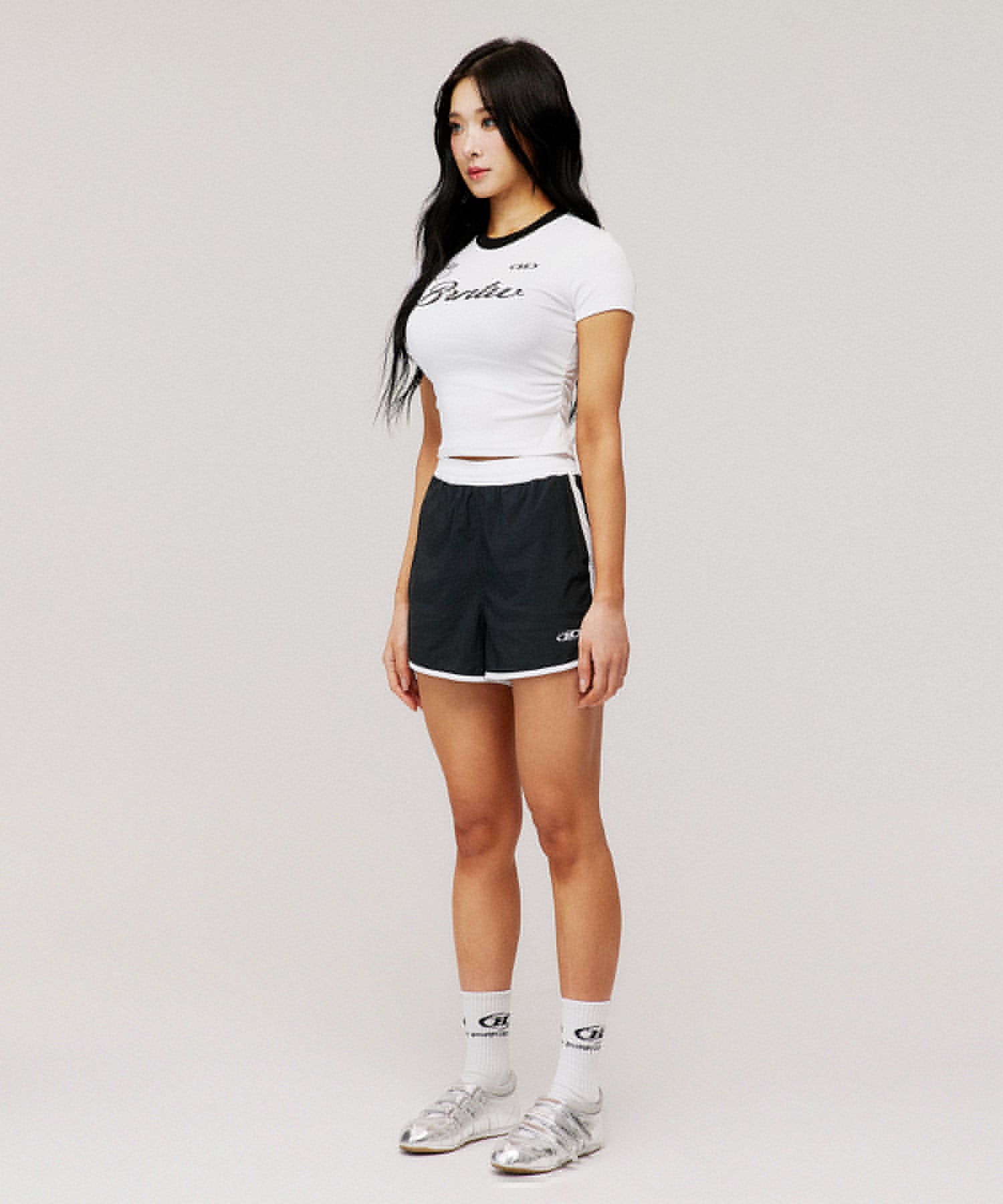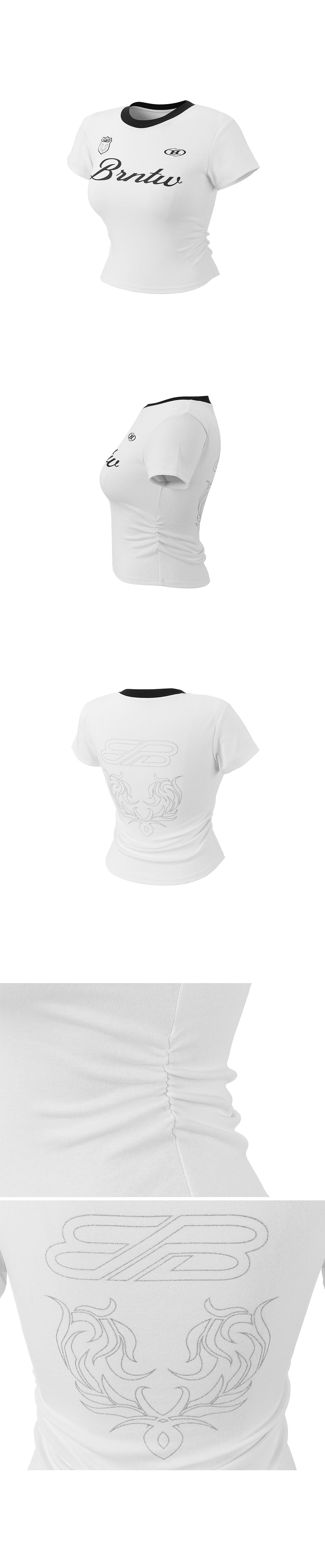 W GLITTER LOGO SHIRRING CROP T-SHIRTS [WHITE]
