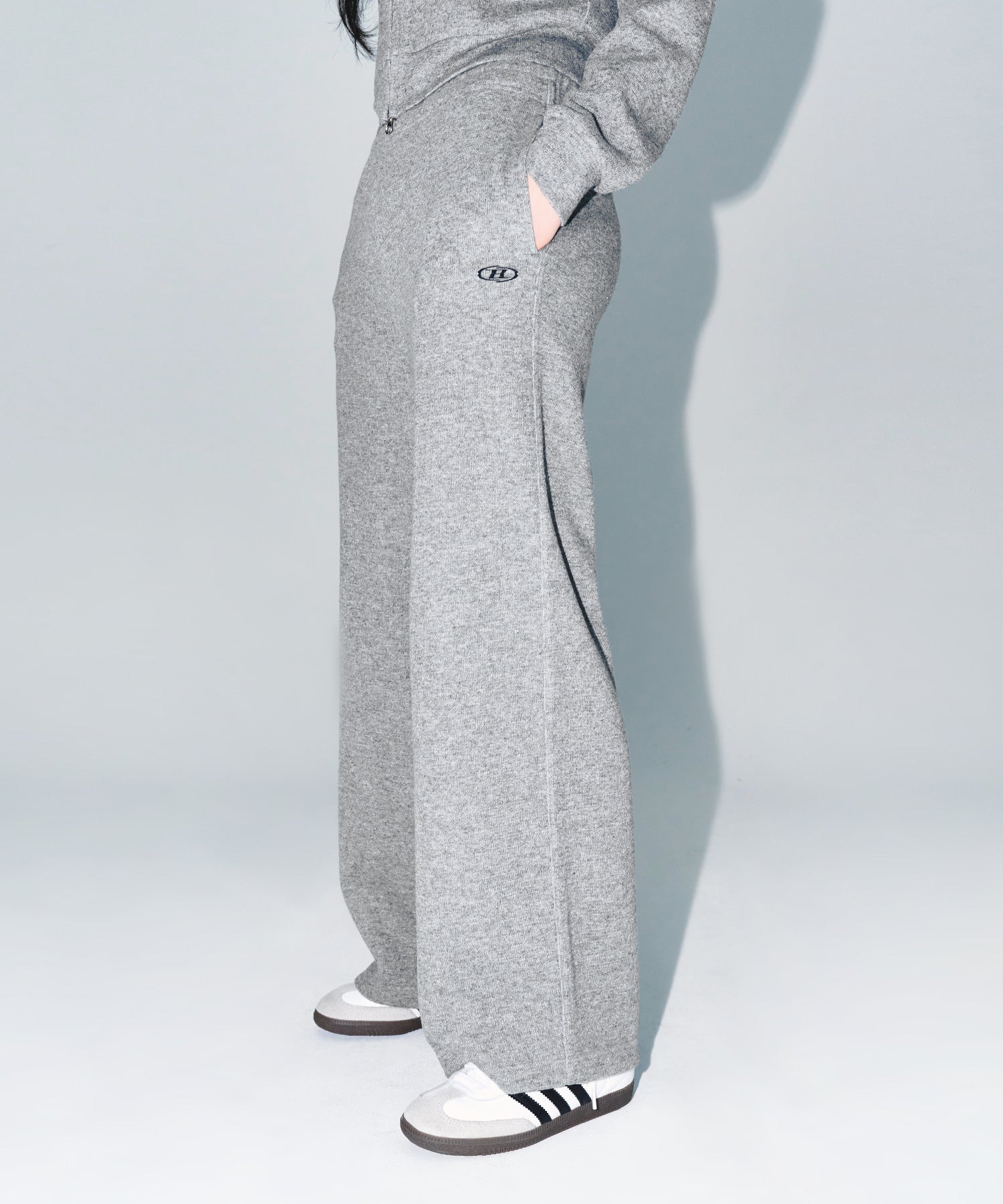 W KNIT LIKE SEMI WIDE PANTS [MELANGE GREY]