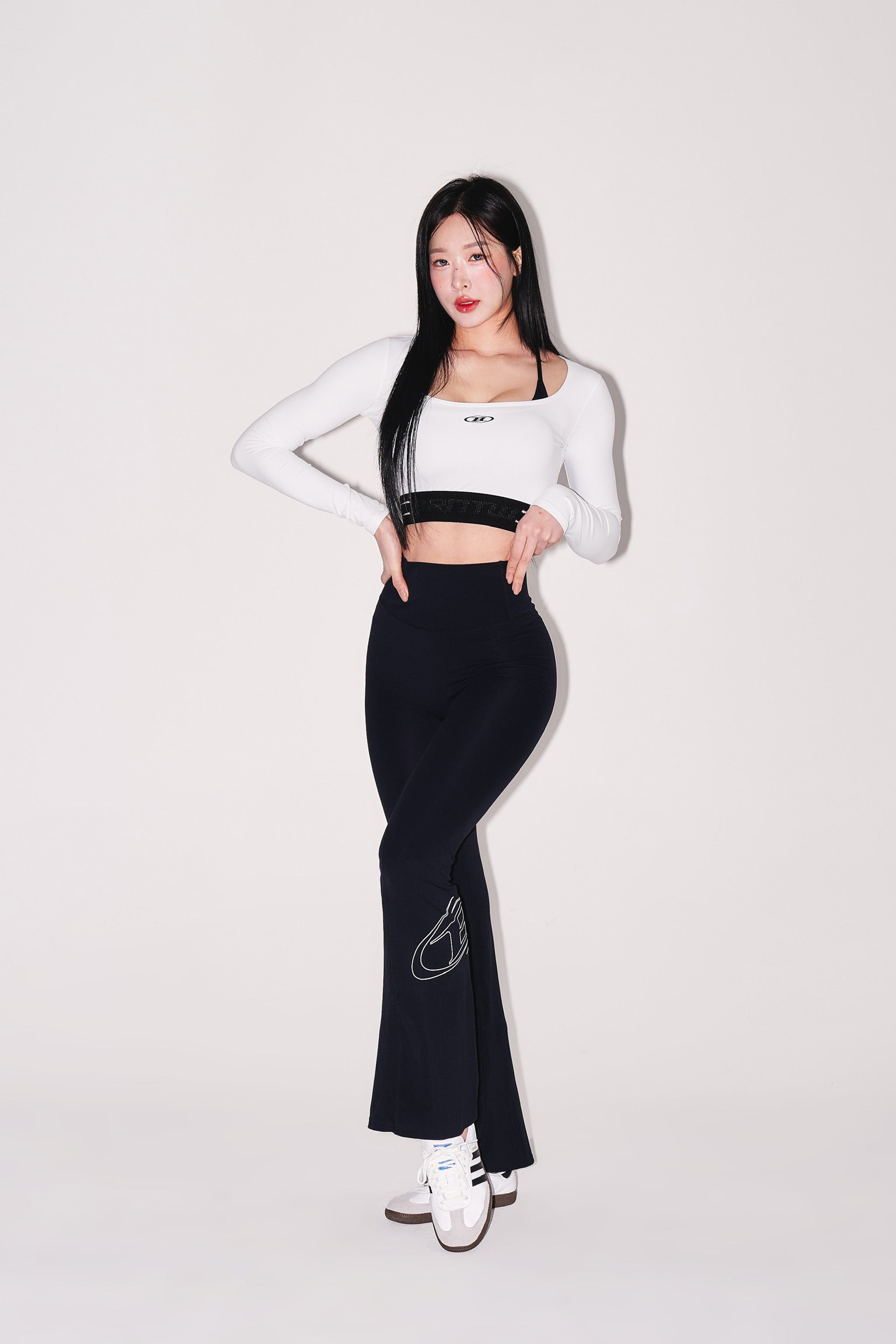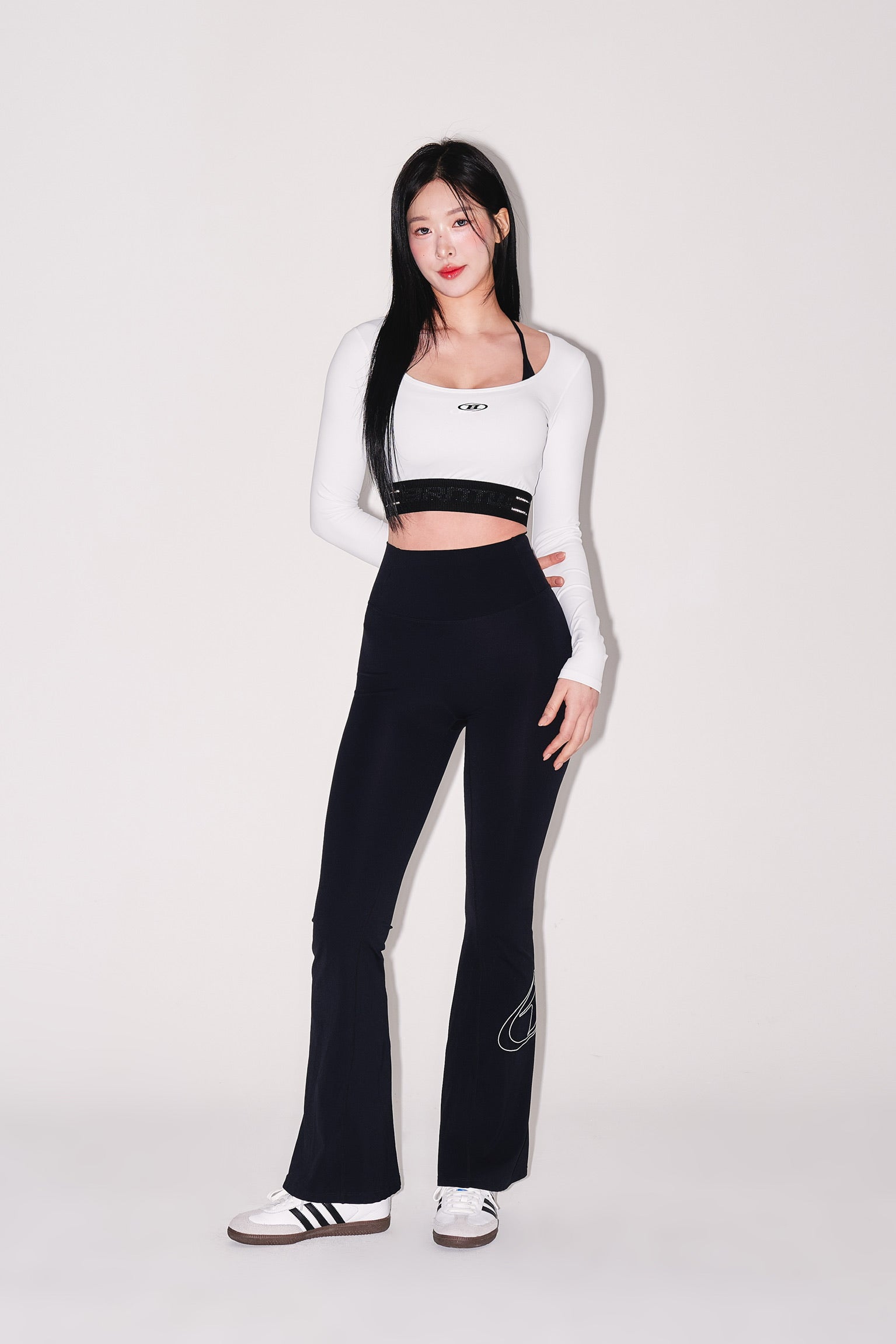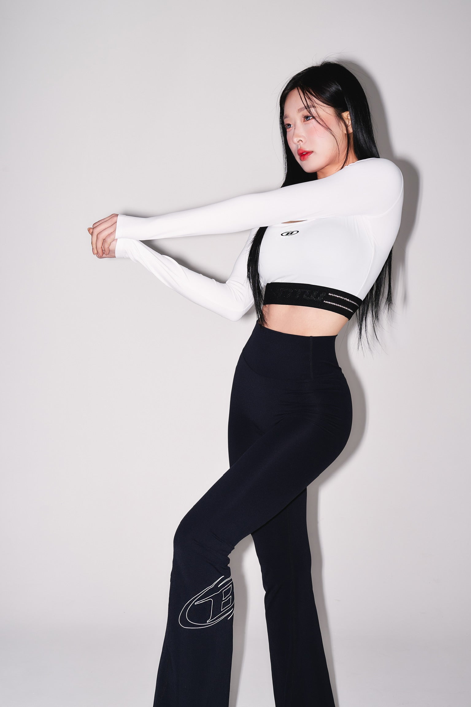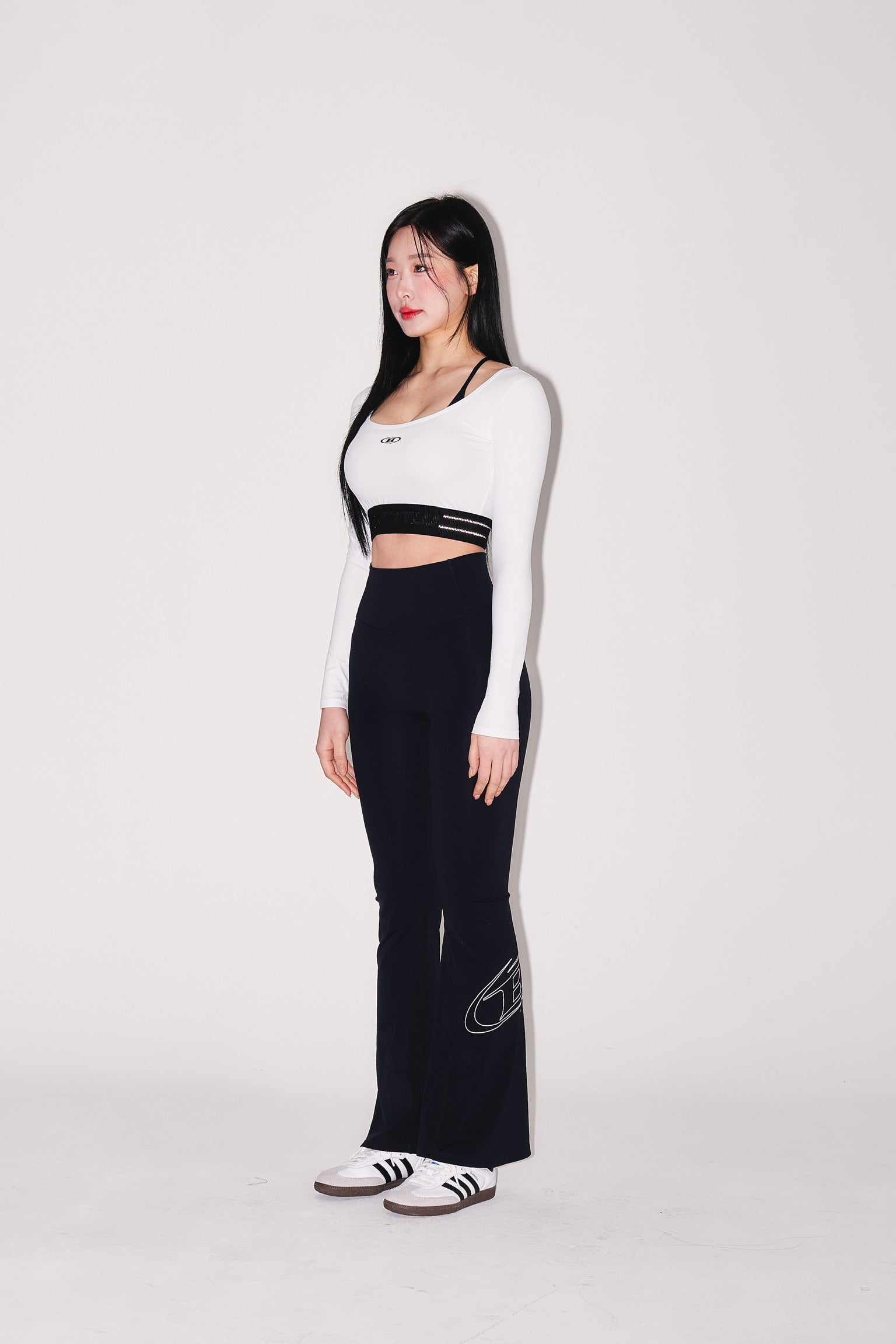 IN STOCK* W REFLECTIVE OUT BAND CROP LONG SLEEVE [WHITE]