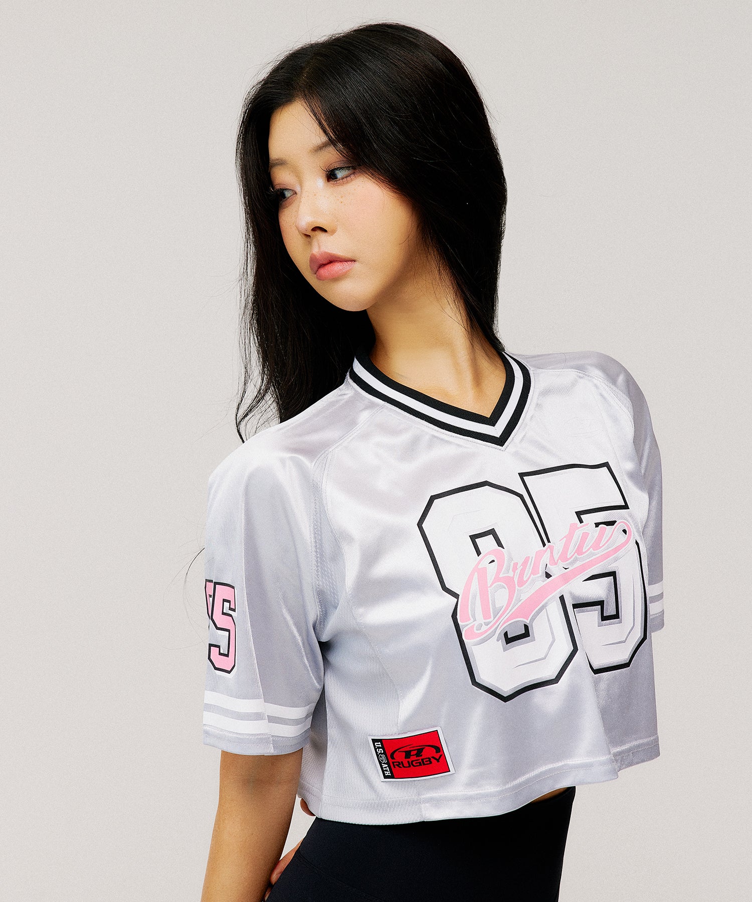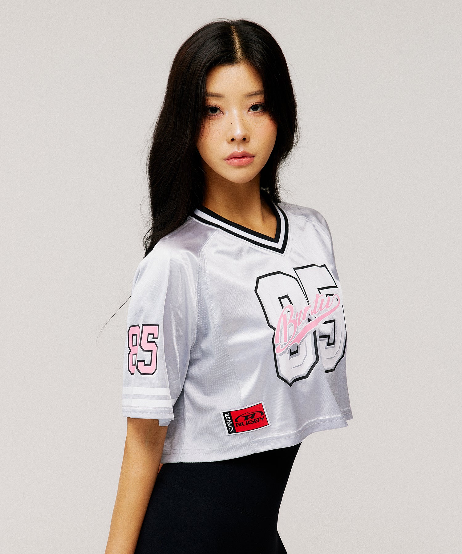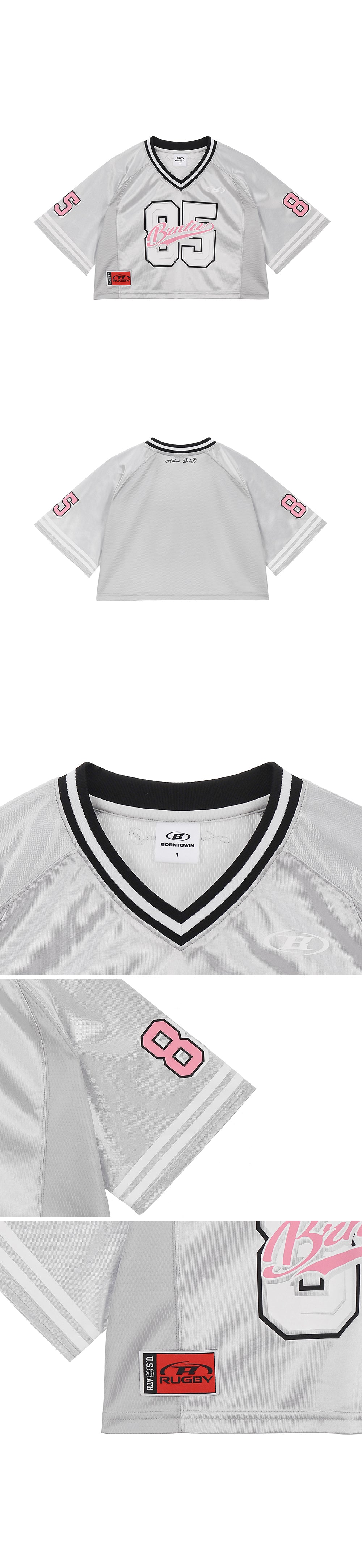 W RUGBY JERSEY CROP T-SHIRTS [SILVER]