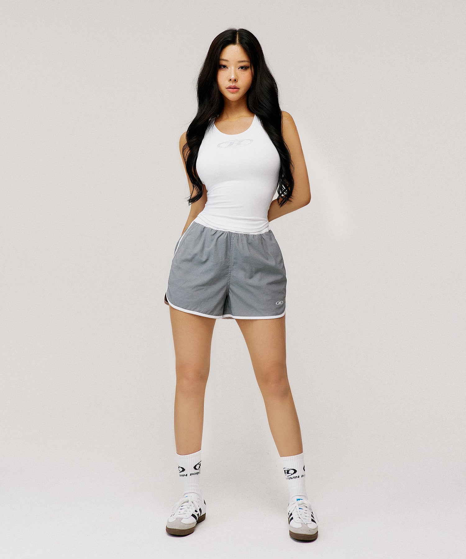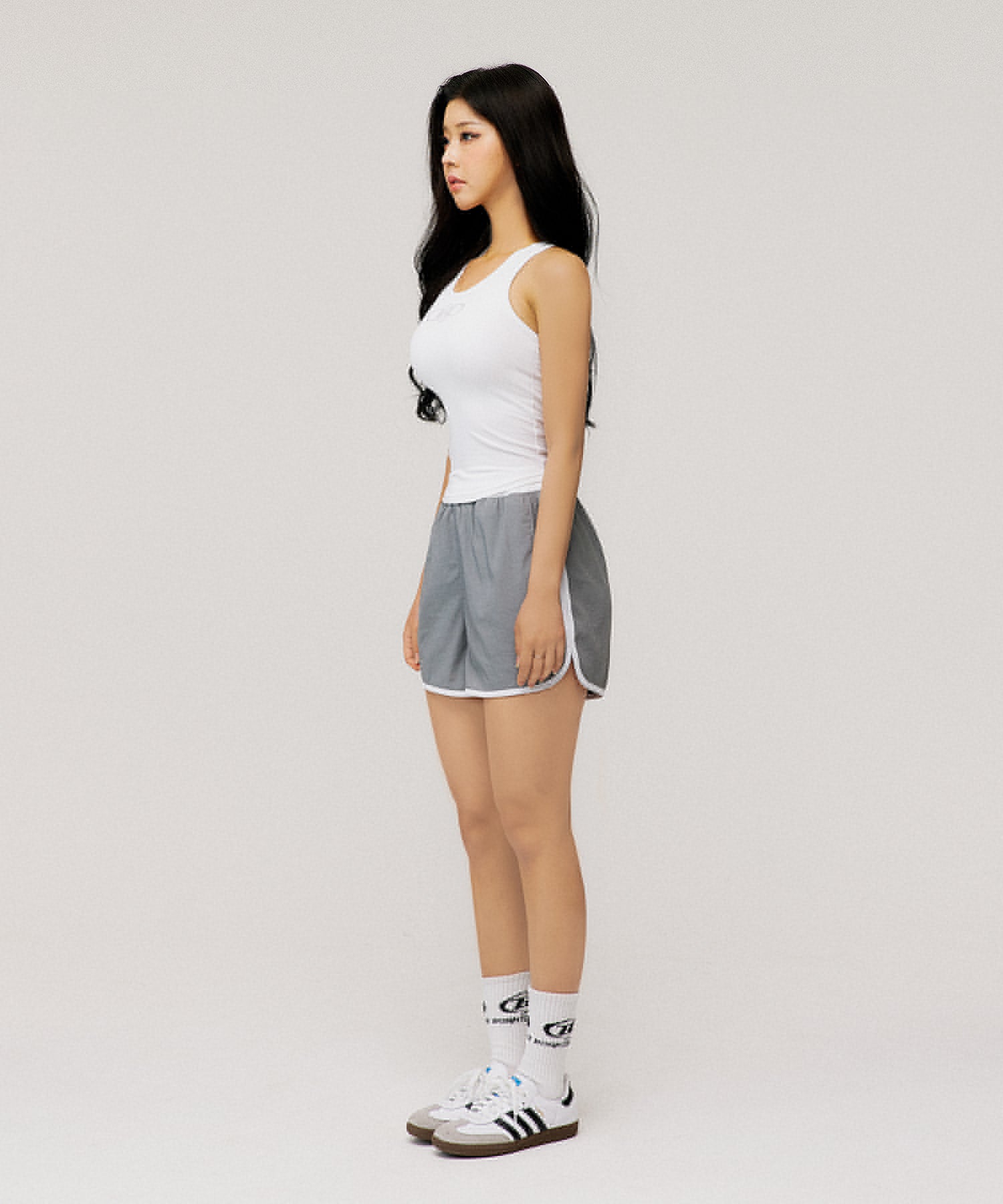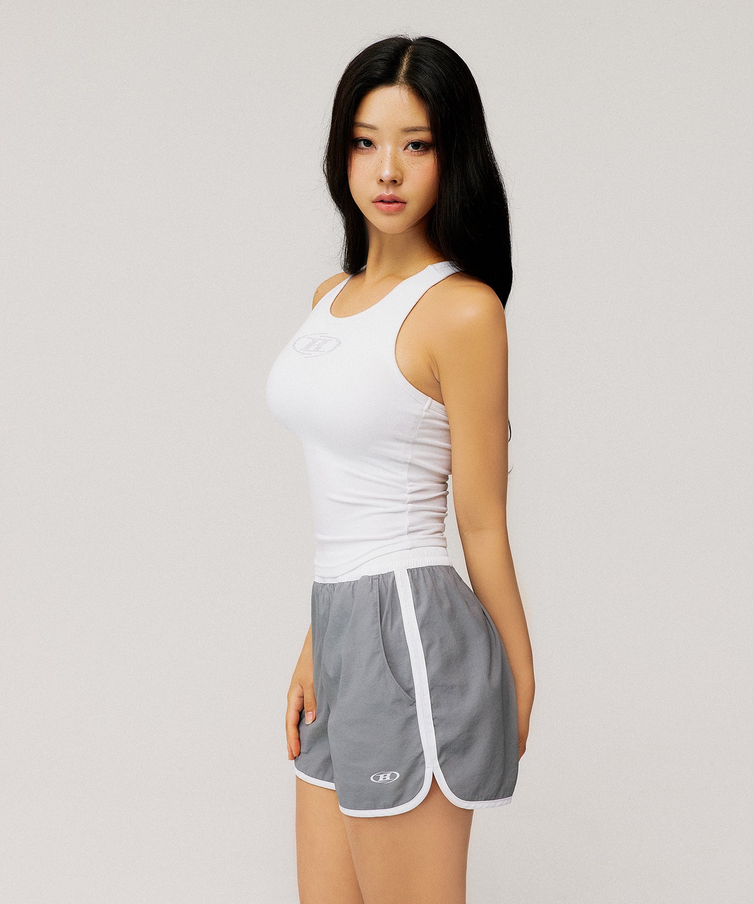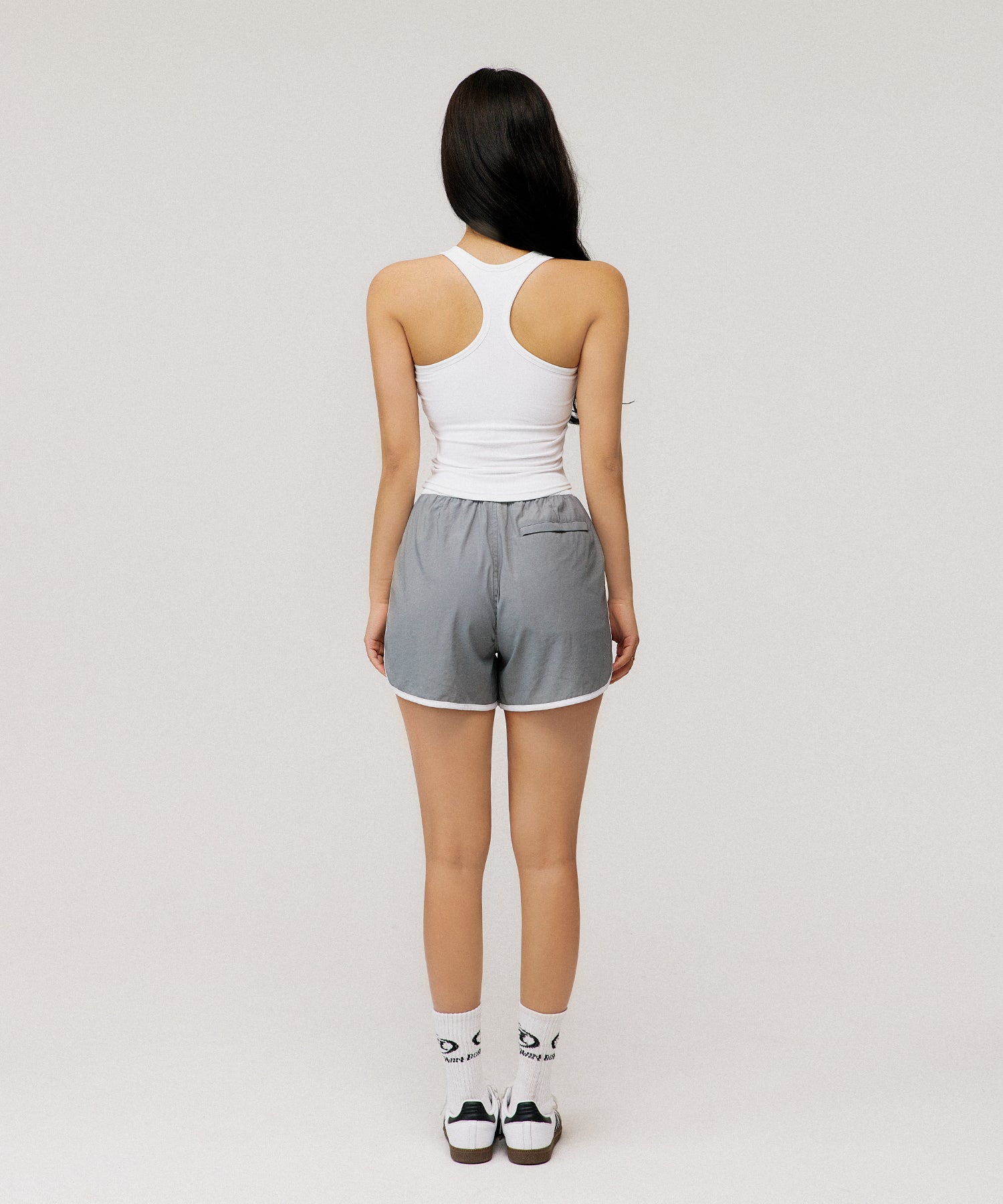 W SYMBOL B NYLON DOLPHIN SHORTS [GREY]
